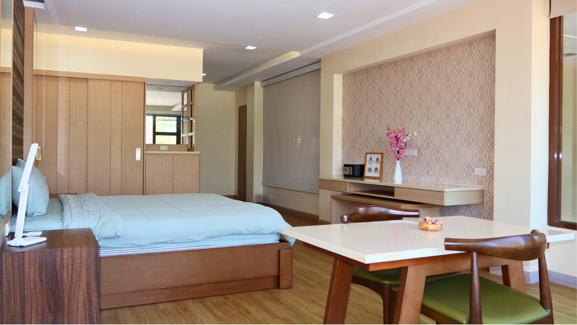 The Deluxe Rooms consist of 50 rooms in total, including 5 single rooms, 30 twin rooms, and 15 triple rooms, offering flexible and comfortable accommodations for individuals, pairs, or small groups. Each room is thoughtfully designed with modern furnishings and amenities to ensure a relaxing and convenient stay. With spacious layouts, cozy interiors, and attention to detail, the Deluxe Rooms provide an inviting environment that allows students and visitors to rest, recharge, and enjoy their time on campus.